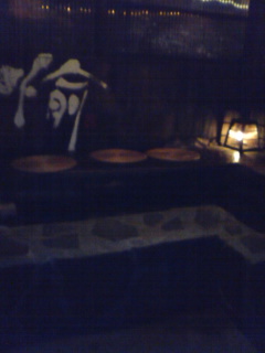 座布団みたいなのに座って、下の温泉に足だけ入るんですが